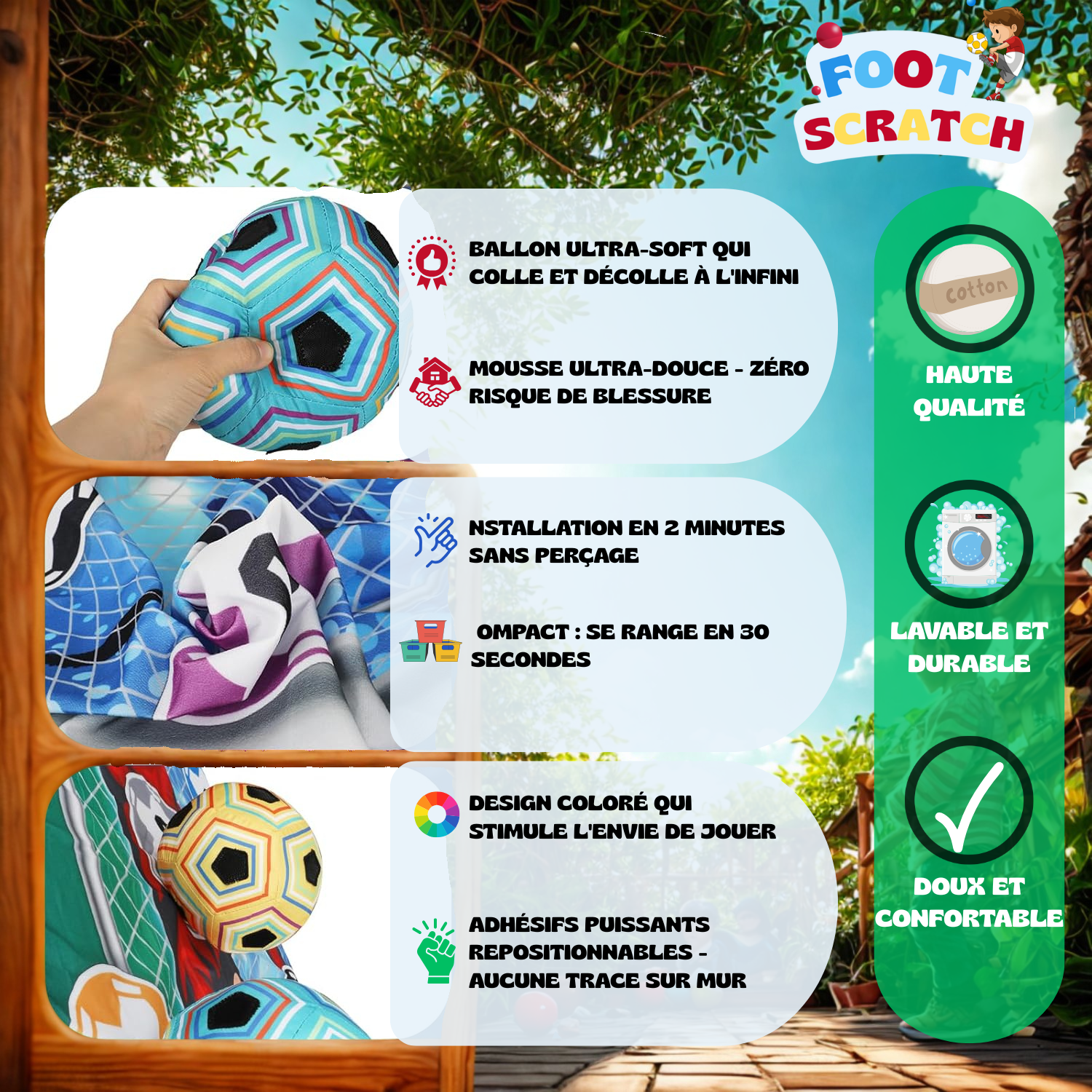 est conçu pour ne pas abîmer les murs pas de trou : testé +10 000 fois, 100% sécurisé pour les enfants ! ✅